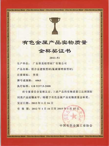 • 2011年有色金屬產(chǎn)品實(shí)物質(zhì)量金杯獎(jiǎng)3