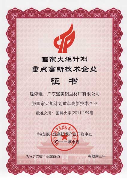 • 2011年國家火炬計(jì)劃重點(diǎn)高新技術(shù)企業(yè)