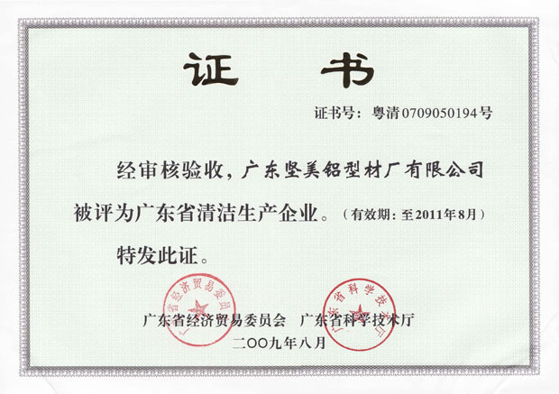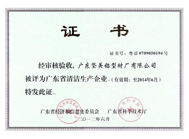 • 2012年廣東堅(jiān)美廣東省清潔生產(chǎn)企業(yè)
