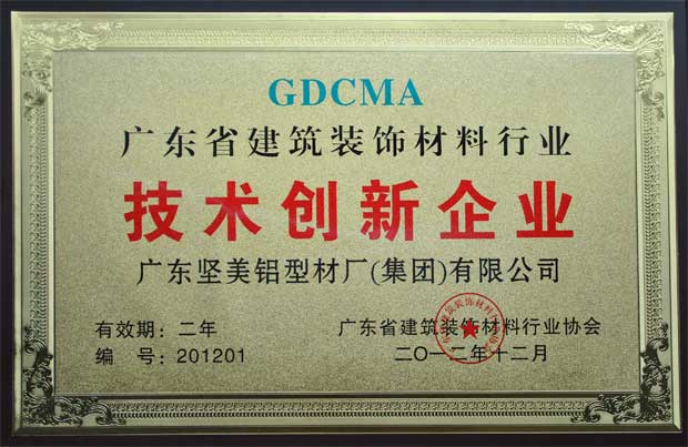 • 2012年廣東省建筑裝飾材料行業(yè)技術(shù)創(chuàng)新企業(yè)