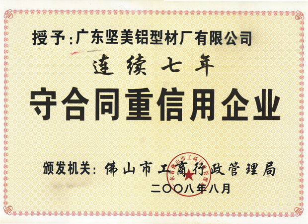 • 2008年連續(xù)7年重合同守信用企業(yè)