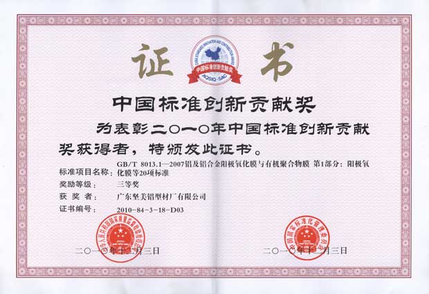 • 2010年中國標(biāo)準(zhǔn)創(chuàng)新貢獻(xiàn)獎(jiǎng)