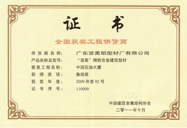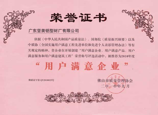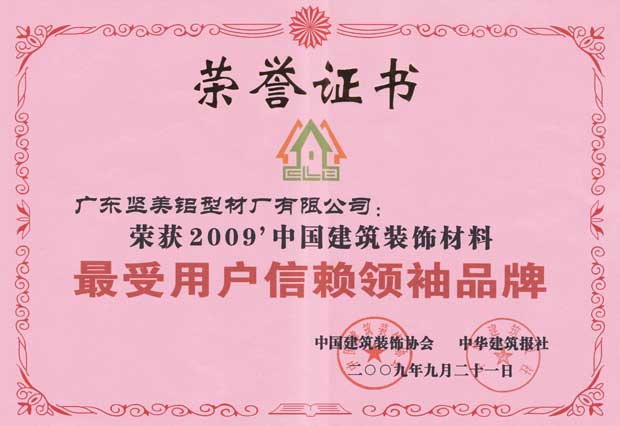 您現(xiàn)在的位置: 首頁 - 堅(jiān)美鋁業(yè) - 堅(jiān)美榮譽(yù) - 2008年-2012年