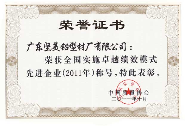 • 2011全國實(shí)施卓越績效模式先進(jìn)企業(yè)