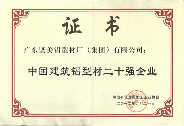 • 2012年中國建筑鋁型材二十強(qiáng)企業(yè)