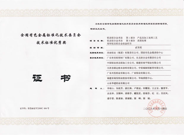 • 2008年全國有色金屬標(biāo)準(zhǔn)化技術(shù)委員會技術(shù)標(biāo)準(zhǔn)優(yōu)