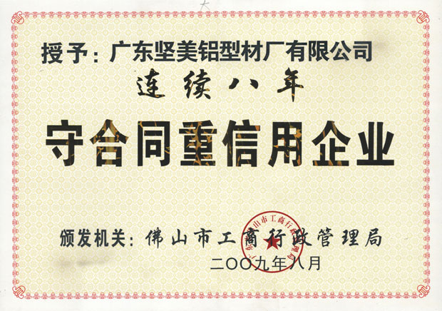 • 2009年連續(xù)八年守合同重信用企業(yè)