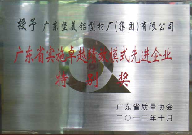 • 2012年廣東省實(shí)施卓越績效模式先進(jìn)企業(yè)特別獎(jiǎng)