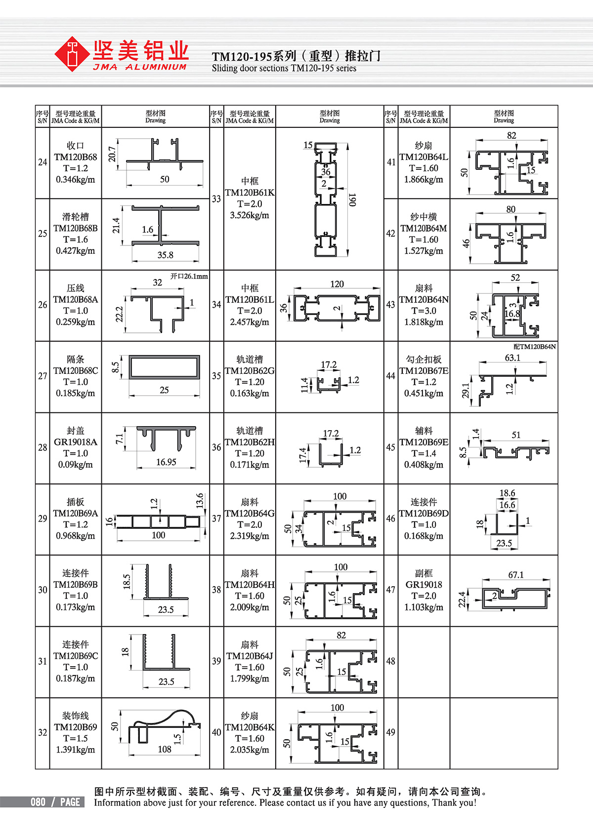 Accueil - Centre de produits - Fenêtres & portes ordinaires - Sliding door sections II - Series TM120-195 Sliding door