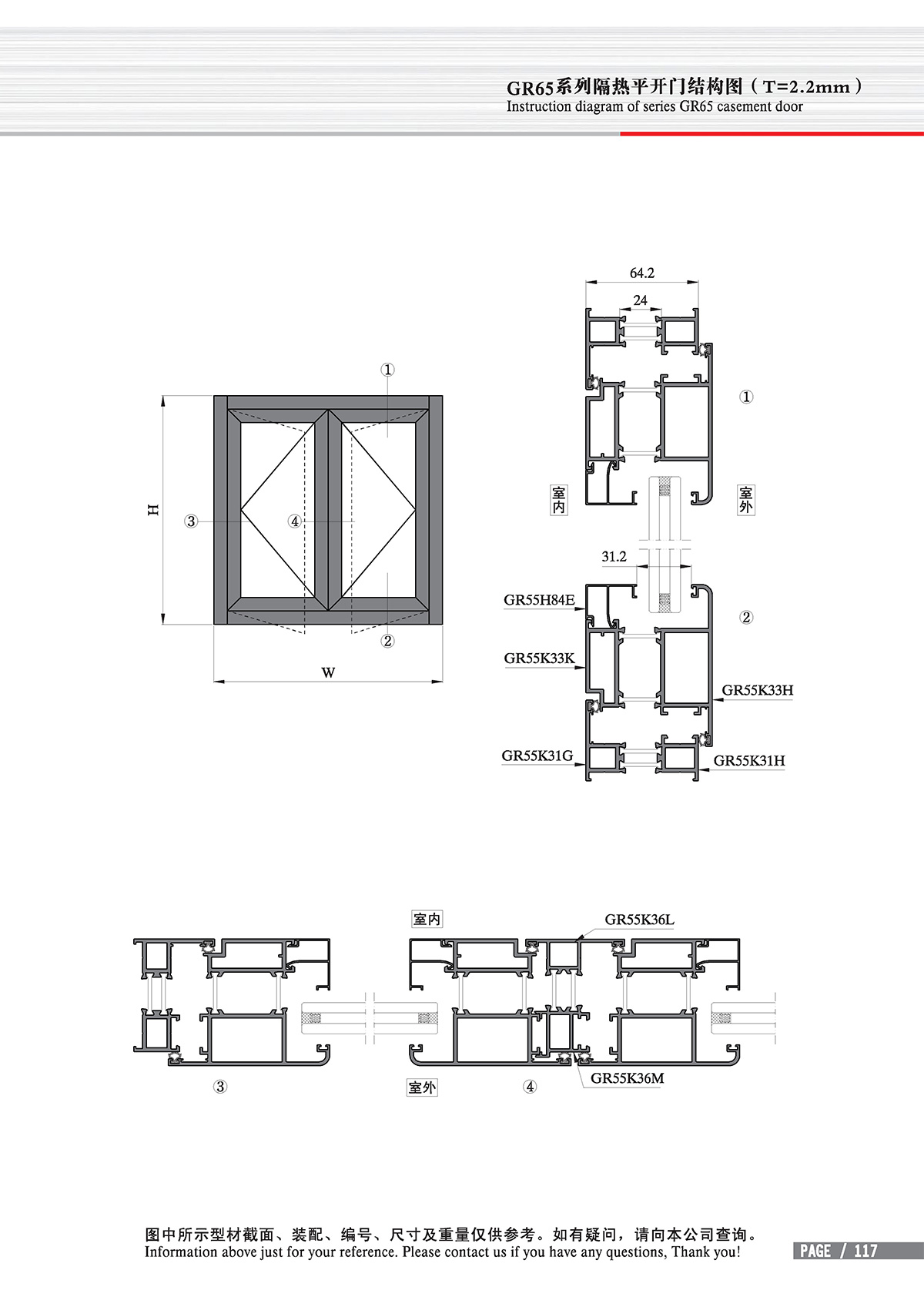 - GR65系列隔熱平開門窗